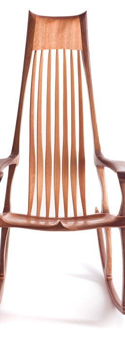 These are heirloom quality, hand crafted, ergonomic, rocking chairs. They are made from North American hardwoods such as Beech, Cherry, Walnut, Maple, Ash, Oak, Hickory and some exotics. Each chair combines contrasting wood types.